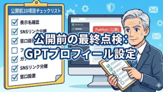 GPTsの公開設定でお悩みの方は必見。名前の露出や身バレ、問い合わせ対応など、公開ボタンを押す前に確認すべき20項目を網羅。実は中身より「プロフィール設定」の方が信用リスクに直結します。この記事を読めば事故を防ぐ安全な公開手順が分かります。