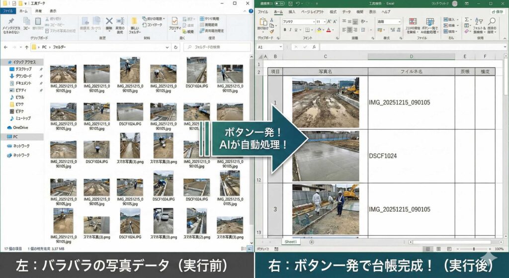 でも、「やっぱり現場では、写真の横に文字があった方が見やすいな」と思い直し、AIにこう命令したんです。