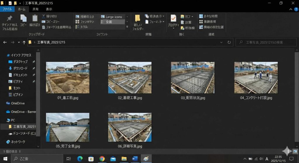 - 横のコメント欄に「施工前」「施工後」とキーボードで打つ。