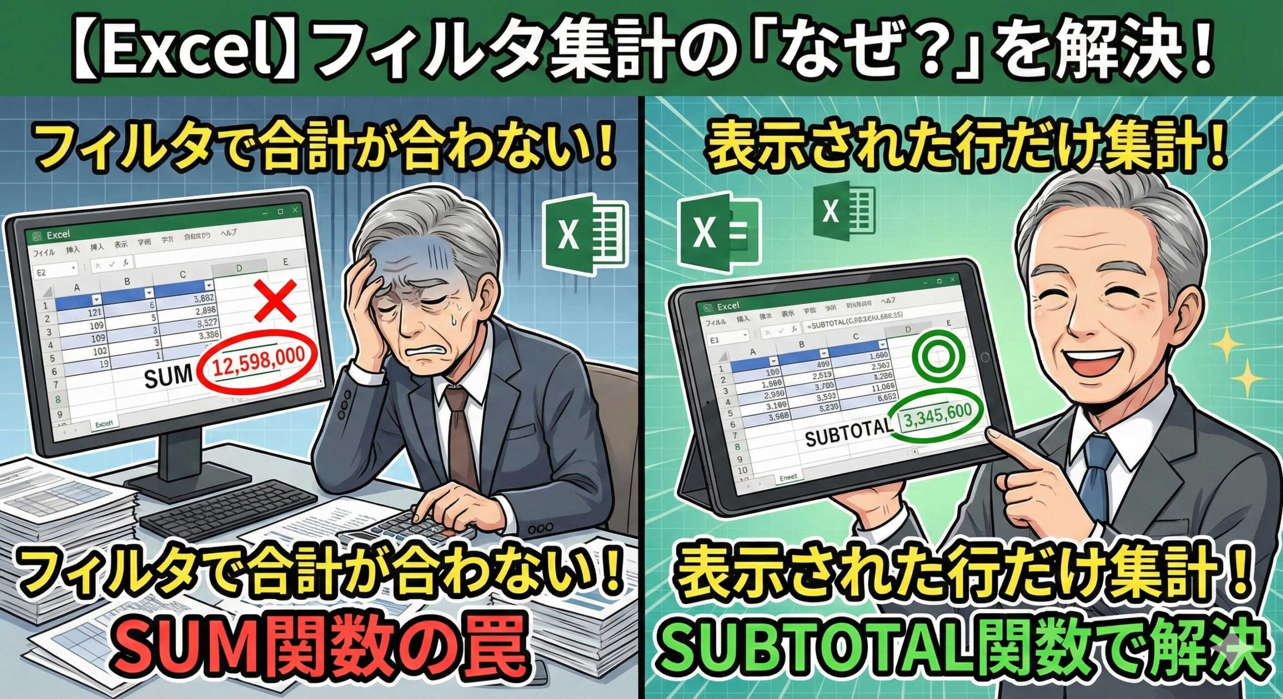 今回は、フィルタで見えているデータだけを正しく合計する「SUBTOTAL(サブトータル)関数」の使い方を解説します。